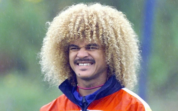 Colombian soccer player Carlos Valderrama looks at