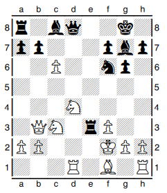 13.Nc2?was tried in Zaruba, A-Marsalek,J CSR-ch. 1954, when Black failed to find (13) 13…Na5! 14.Qa4 Bf5! 15.b4? Bxc2 16.Qxc2 Rc8 17.Bd2 Ng4+! 18.fxg4 Rxc3! 19.Bxc3 Qb6+ 20.Kg3 Re3+ 21.Kh4 g5+ with a rapid mate. For example, 22.Kxg5 Qh6+ 23.Kf5 Qg6+ 24.Kf4 Bh6+ 25.g5 Qxg5#